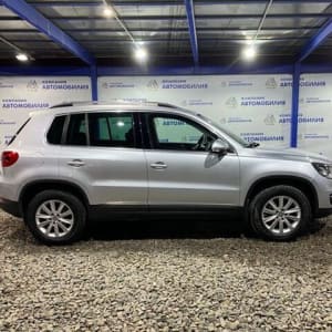 /7136/242/272/41/ Volkswagen Tiguan - внедорожник 2012г.в., 170л.с. 2л i-турбо, 4WD, серебристый металлик, АКПП-типтроник-6, 6SRS, ABS, EBD, ESP, VSC, ЭУР, чёрная ткань, климат-контроль 2-х зонный, полный эл. пакет, складываемые эл. зеркала с обогревом, регулировка водит. сиденья по высоте, обогрев передних сидений, бортовой компьютер, AUX, магнитола CD/MP3, центральный замок, охлаждаемый бардачок, иммобилайзер, Auto-Hold, задний парктроник, датчик дождя, датчик света, тонированные стекла, регулировка руля в 2-ух положениях, отделка под алюминий, биксенон, противотуманные фары, омыватель фар, литые диски R16, защита двигателя, рейлинги, 5 мест, датчики давления в шинах, хорошее техническое состояние, отличный внешний вид, 113769км, все ключи, обмен, кредит!
