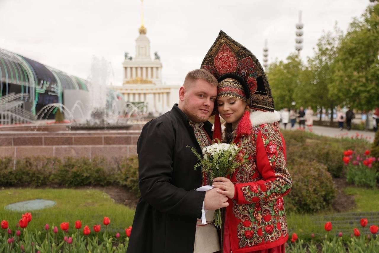 Одновременно более 150 пар из разных регионов страны - от Калининградской области до Камчатки - зарегистрировали брак на Главной сцене ВДНХ. Среди молодоженов была и пара из Ярославской области.