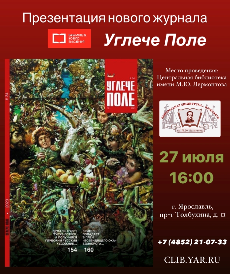 27 июля в 16:00 в Центральной библиотеке имени М. Ю. Лермонтова состоится презентация нового выпуска журнала «Углече Поле».