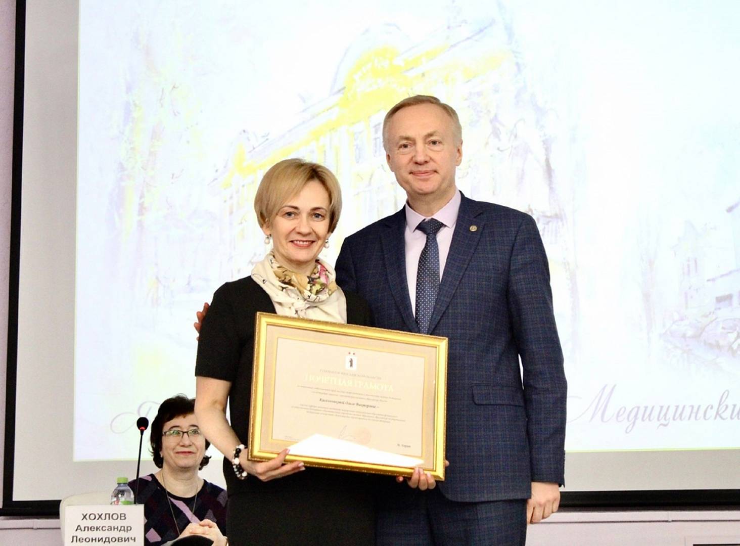 Заседание ученого совета ЯГМУ началось с вручения наград. Грамоты Губернатора Ярославской области вручили доценту кафедры педиатрии ИНПО Ольге Викторовне Кисельниковой и декану международного факультета Игорю Владимировичу Филиппову . Почетной грамотой Центральной избирательной комиссии Российской Федерации награждена Галина Юрьевна Базанова , являющаяся председателем участковой избирательной комиссии избирательного участка № 1901, который традиционно располагается в главном корпусе ЯГМУ.