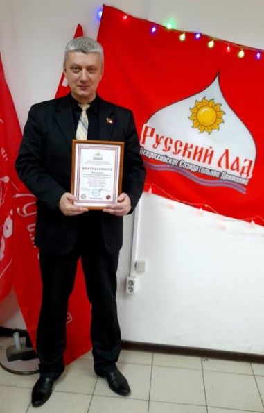 За большой личный вклад в подготовку и проведение Всероссийского творческого Фестиваля-конкурса «Русский Лад»-2023 Благодарностью от имени Председателя Координационного совета движения Владимира Степановича Никитина был награжден Председатель Ярославского регионального отделения Всероссийского Созидательного Движения «Русский Лад», первый секретарь Кировского районного отделения КПРФ Алексей Филиппов.
