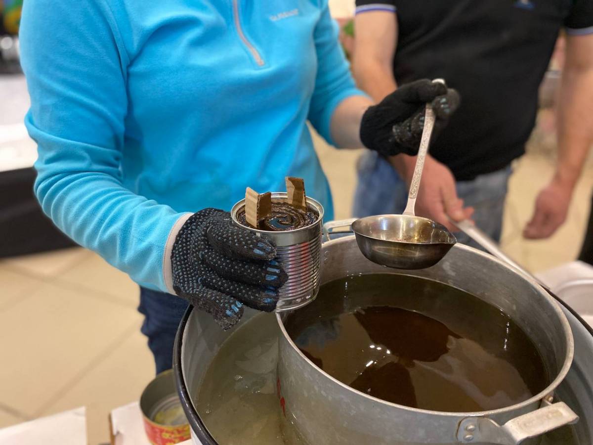 «Сначала подготавливаются банки, срываются все этикетки, потом режется картон соответствующего размера и делается накрутка этого картона, он помещается в банку. Потом плавим парафин и заливаем эти баночки, даем застыть и готово», - рассказывает мама одного из военных Ирина.
