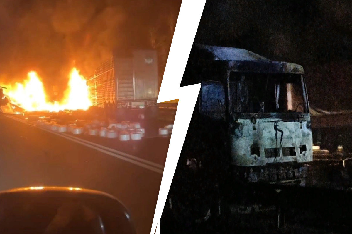 Сразу после аварии загорелся грузовик «Хендай», а следом огонь перекинулся на фуру