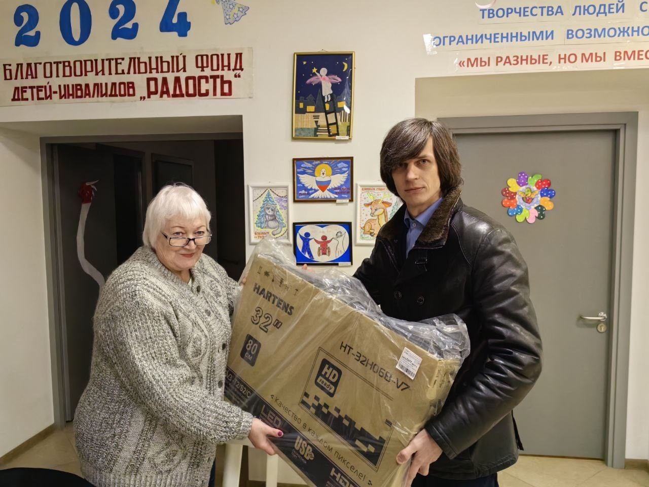 Закончился шестидневный маршрут гуманитарной миссии в Мариуполе. Здесь Сергей Богачков вместе с волонтёрами РООВ "ШТОРМ" вручил местному благотворительному фонду детей-инвалидов "Радость" новый телевизор и сладкие подарки. Под патронажем фонда сейчас находятся 110 детей. Телевизор им необходим для того, чтобы ребятишки, имеющие особенности в развитии, могли смотреть обучающие и развивающие программы, помогающие им адаптироваться и получить полезные социальные навыки.