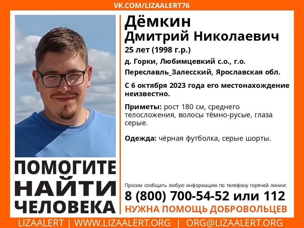 В Ярославской области больше недели ищут пропавшего без вести 25-летнего Дмитрия Дёмкина. Он ушел из дома в деревне Горки в Переславском районе 6 октября. С тех пор его не могут отыскать.