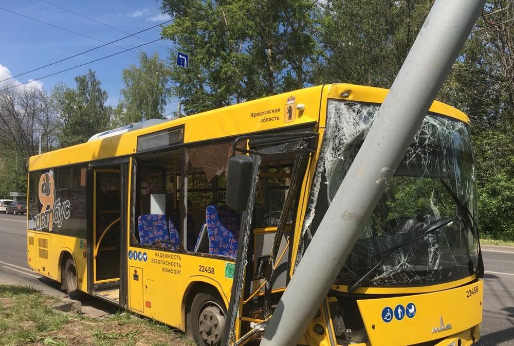 Девять пассажиров госпитализированы: в Ярославле рейсовый автобус снес столб