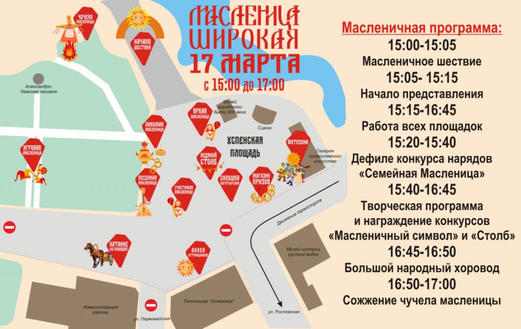 С нетерпением ждём всех на пл. Успенская на людей посмотреть, себя показать, зиму провожать, весну закликать, попросить друг у друга прощения!
