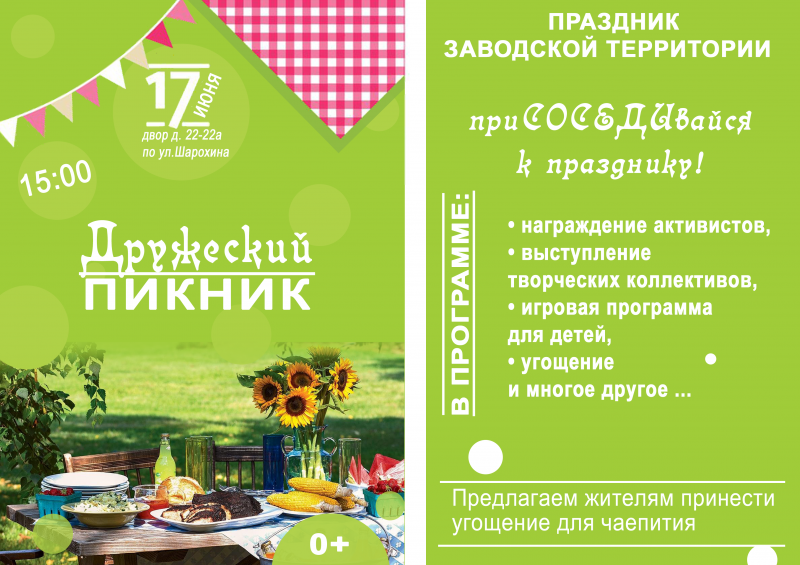 Приглашаем жителей и гостей города на праздник Заводской территории. Вас ждут концерт, игры и угощение.