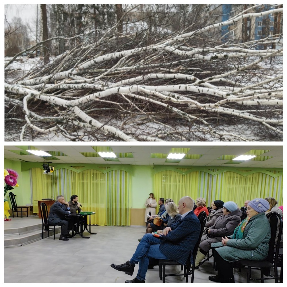 6 декабря с жителями Заволжского района пришли пообщаться власти в лице главного архитектора города Артёма Цымбалова и главы района Андрея Мамонтова . В самом начале с речью и большим количеством вопросов выступил один из жителей Нижнего посёлка. В начале он напомнил события 25 октября, когда начали валить деревья, затем перешёл к сути.