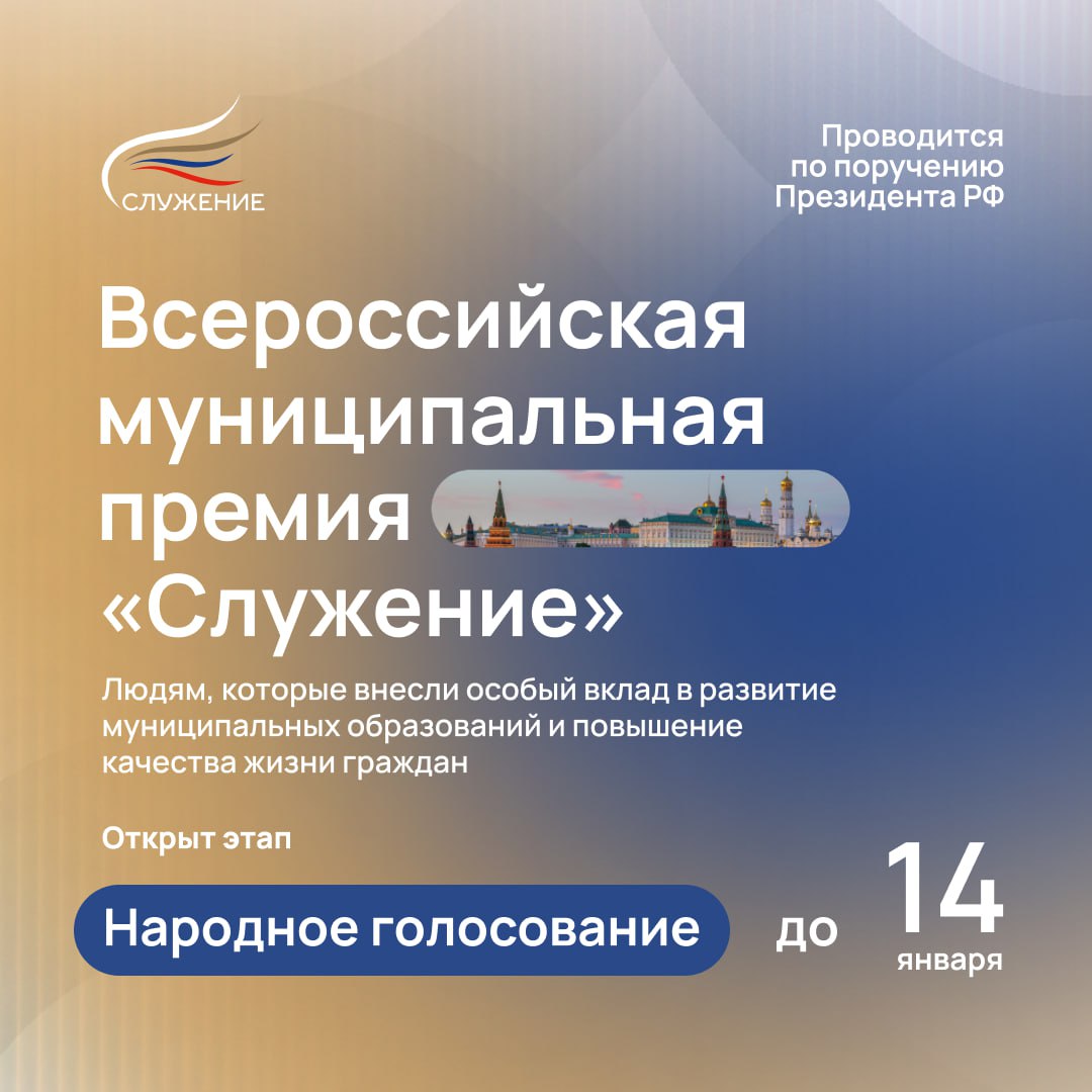 Началось народное голосование Всероссийской муниципальной премии «Служение».