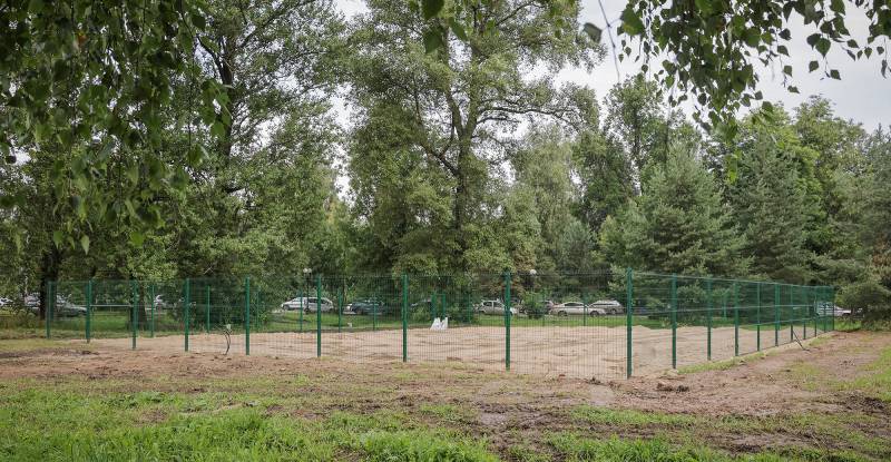 Сформировано песчаное покрытие, установлено ограждение, смонтировано почти все тренировочное оборудование. Подрядчик делает финальные работы.