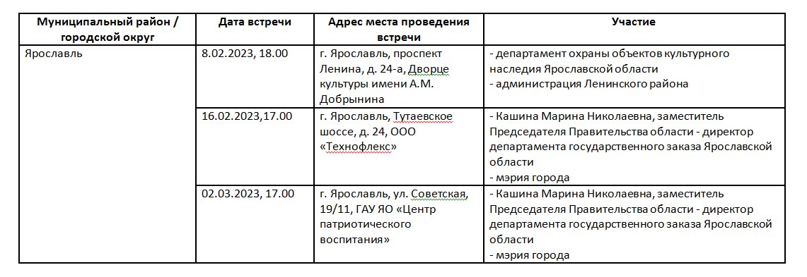 График встреч органов местного самоуправления с жителями города Ярославля при участии заместителей Губернатора области, заместителей Председателя Правительства области, руководите
