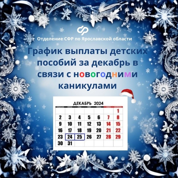 24 декабря Отделение СФР по Ярославской области перечислит: