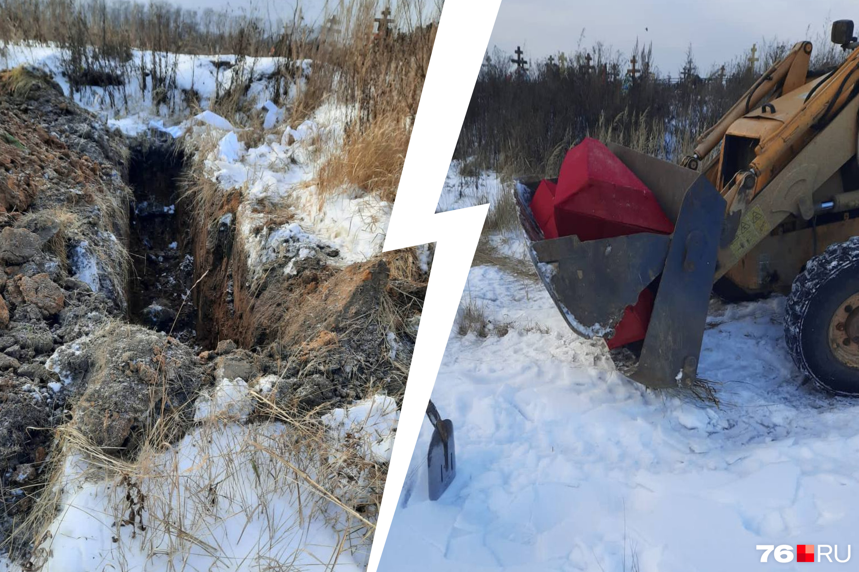 Ярославцев возмутила ситуация, развернувшаяся на Осташинском кладбище днем 29 ноября: гробы с покойниками к выкопанной траншее подвезли в ковше экскаватора. Рядом с ямой на земле валялись именные таблички с датами рождения и смерти.