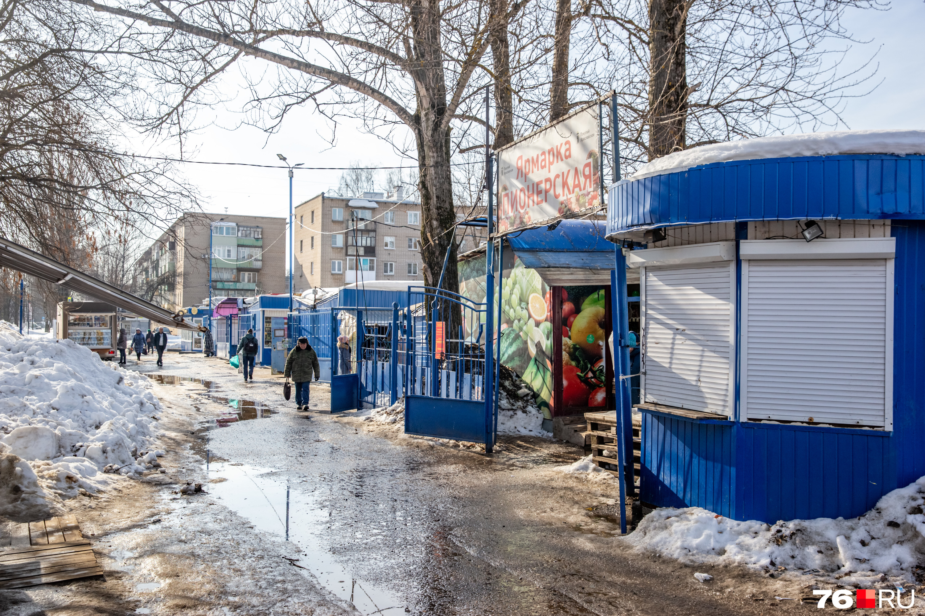 Эта торговая площадка существует уже много лет. До 2013 года она работала в статусе рынка. Но с 1 января 2013 года, когда в России рынки вне стационарных помещений запретили, стала называться ярмаркой. Еще два-три десятилетия назад торговля здесь шла бойко, рынок был довольно большим по площади. Сейчас от прежнего величия мало что осталось. Только бело-синие павильоны, которые стояли в Ярославле еще во времена мэрства Виктора Волончунаса.