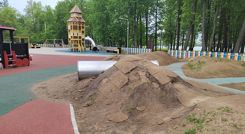 После зимы детский городок «Маленький Рыбинск» требует ремонта – газон завял, карусель и качели сломаны. Новая площадка была открыта осенью 2022 года .