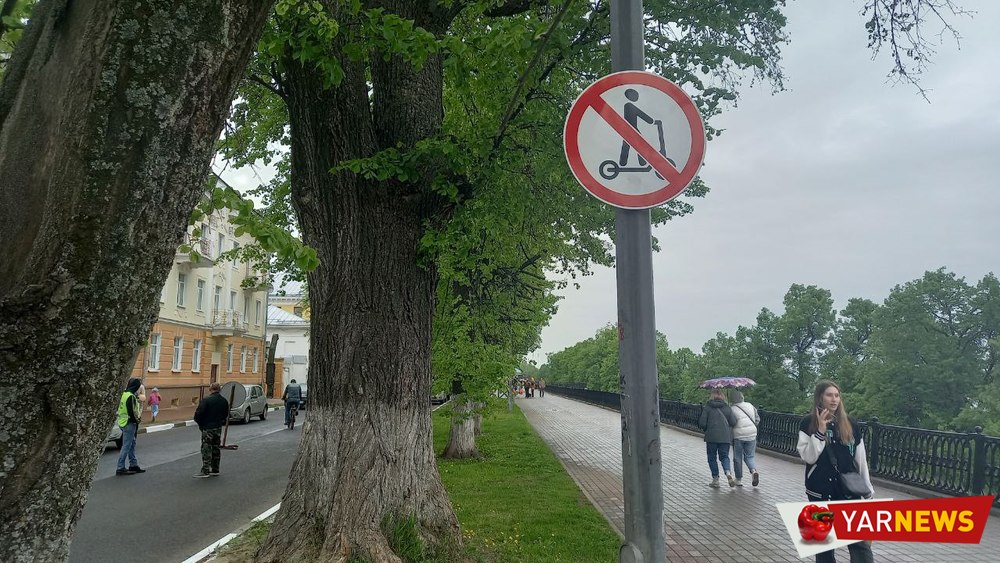 Внешний вид знака - это перечеркнутый человечек на самокате. В Ярославле первый запрет уже появился. Дорожный знак «Движение на средствах индивидуальной мобильности запрещено» установлен на всем протяжении Волжской набережной. Правда, тут же на пешеходных дорожках можно увидеть и сами самокаты.