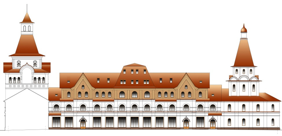 Комплекс будет состоять из двух прямоугольных корпусов, разных по ширине и высоте и соединенных угловой башней с шатровой крышей. На противоположном конце одного корпуса расположена двухэтажная церковь.