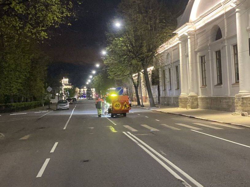 Напомним, мэр Ярославля объявил, что разметку термопластиком наносят на улицах Комсомольской, Советской, Андропова, Трефолева, Максимова, Первомайской, Нахимсона, Почтовой и Которосльной набережной. Работы начались в ночь со 1 на 2 мая. ЯрНьюс обратил внимание, что параллельно идет конкурс по определению подрядной организации. И его победитель пока не определен.