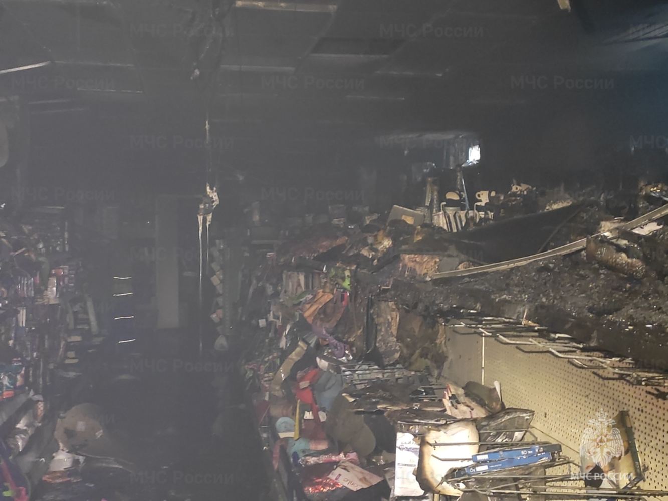 Пожар произошел на цокольном этаже в магазине Fix Price. Судя по фотографиям, предоставленным МЧС, товары и оборудование в магазине сильно пострадали. К счастью, магазин еще не открылся ранним утром, и людей в торговом центре не было.