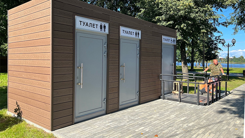 Продолжается благоустройство Волжского парка. Сейчас подрядчик монтирует модульный современный туалет. Он заработает уже в ближайшие дни.