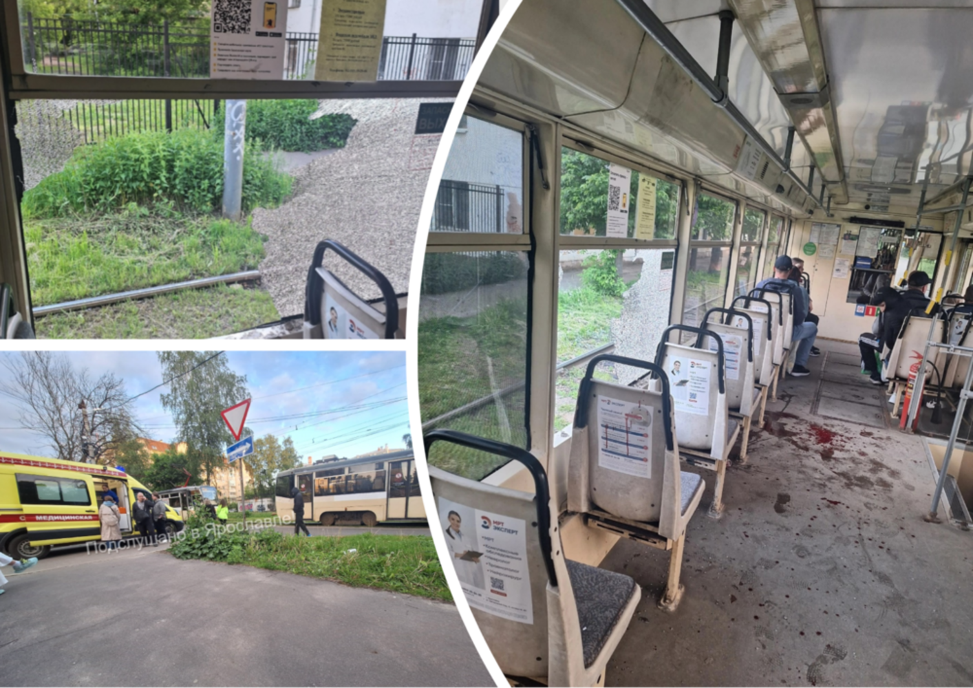 В Ярославле неизвестный мужчина устроил потасовку в трамвае, после чего сбежал через разбитое окно.