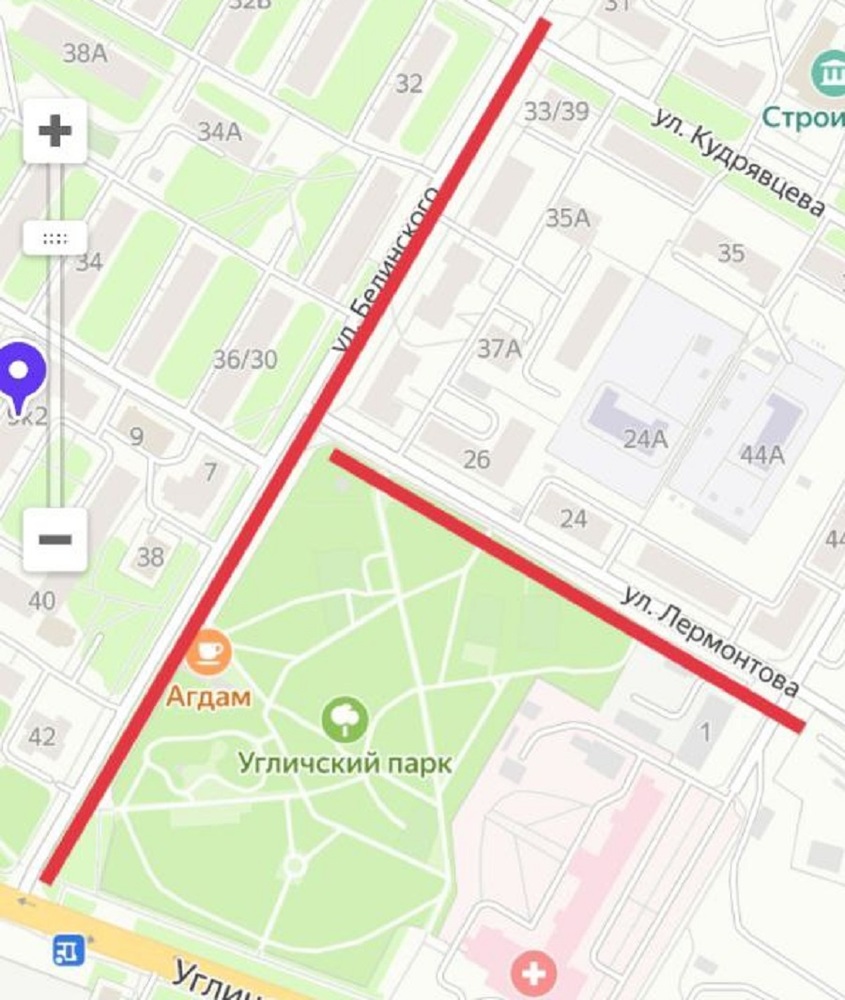 «Дорога граничит с территорией парка Ветеранов на улице Угличской. Постоянные посетители парка – пожилые люди, которые занимаются скандинавской ходьбой и просто прогуливаются. Там часто гуляют молодые мамы с колясками. В детские городки прибегают и приезжают на самокатах или велосипедах дети».