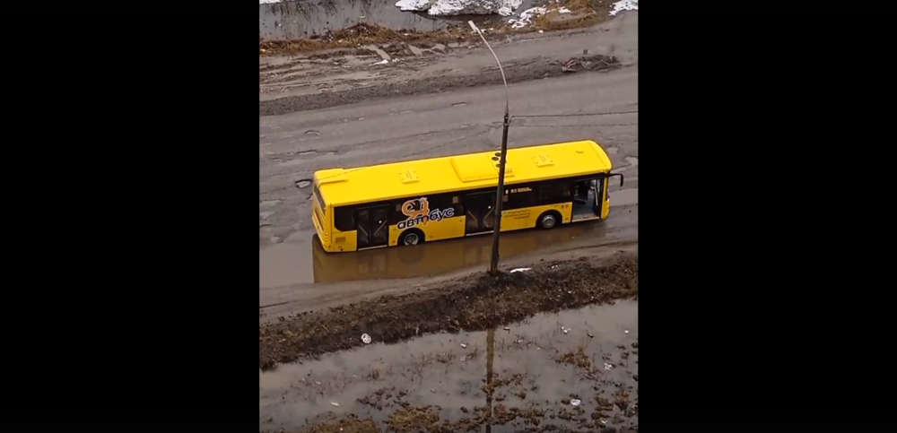 В Ярославле в день старта транспортной реформы желтый автобус застрял в яме