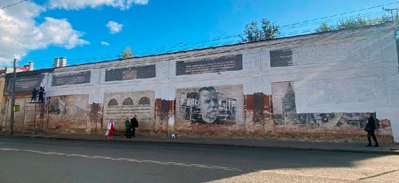 В Ярославле закрашивают мурал с изображением меценатов