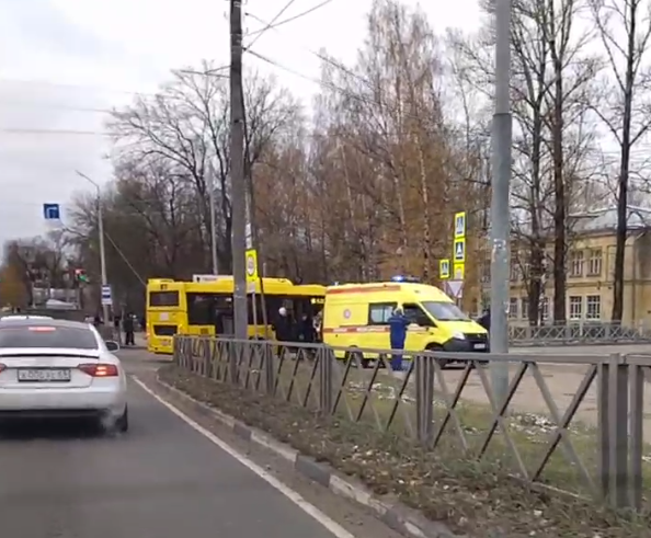 Кадрами, на которых скорая помощь стоит с включённым проблесковым маячком рядом с припаркованным жёлтым автобусом, прислал в редакцию ЯрНьюс очевидец происшествия.