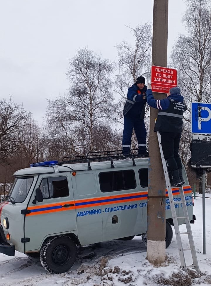 «С начала зимы уже было восстановлено 6 запрещающих знаков "Выход на лёд запрещён". Сотрудники МКУ "Центр гражданской защиты" города Ярославля убедительно просят людей, не срывать и не портить знаки!», — говорится в обращении «Центра».