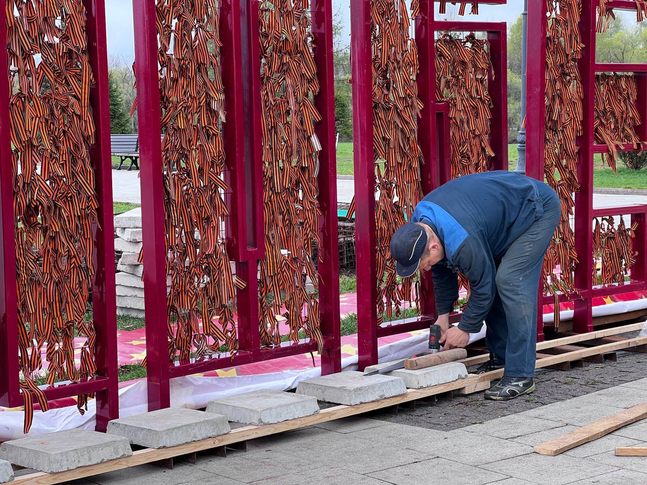Основные мероприятия по украшению города будут завершены уже на этой неделе, а до 5 мая планируется завершить монтаж информационных проектов «Весна 45-го» и «Герои и подвиги» на Первомайском бульваре и в районе Вечного огня.