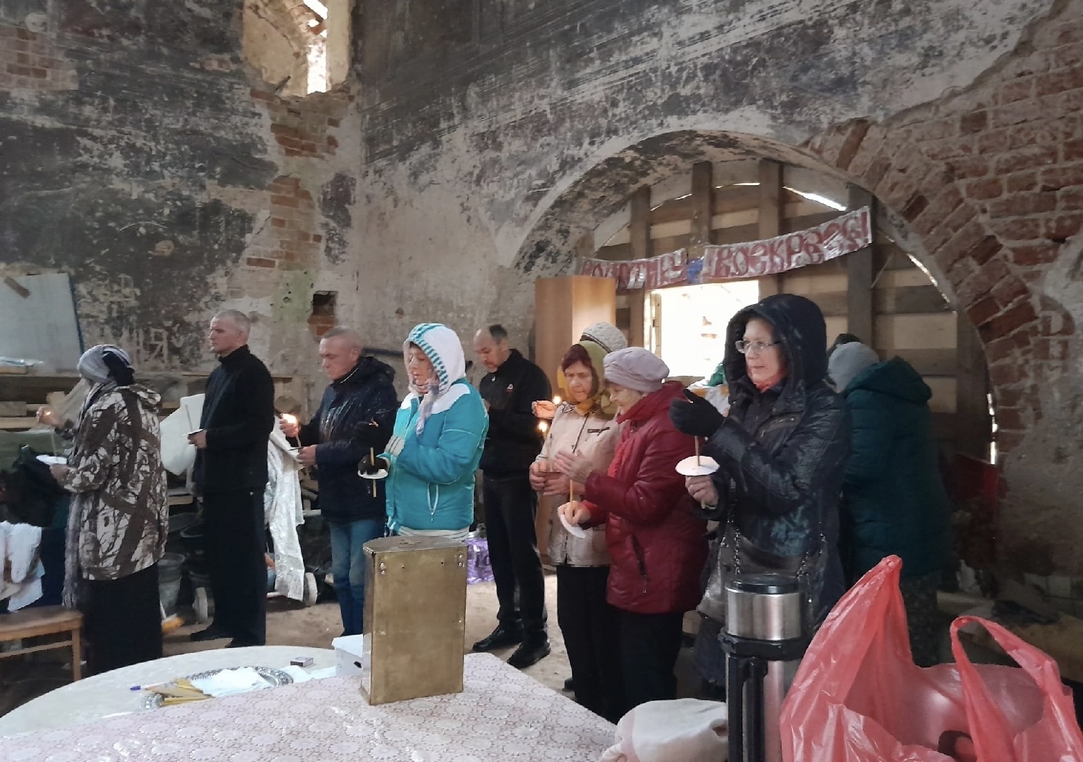 14 октября 2023 года, на Покров Божией Матери, был отслужен молебен в возрождающемся Крестовоздвиженском храме с. Сидорково (Селифонтово).