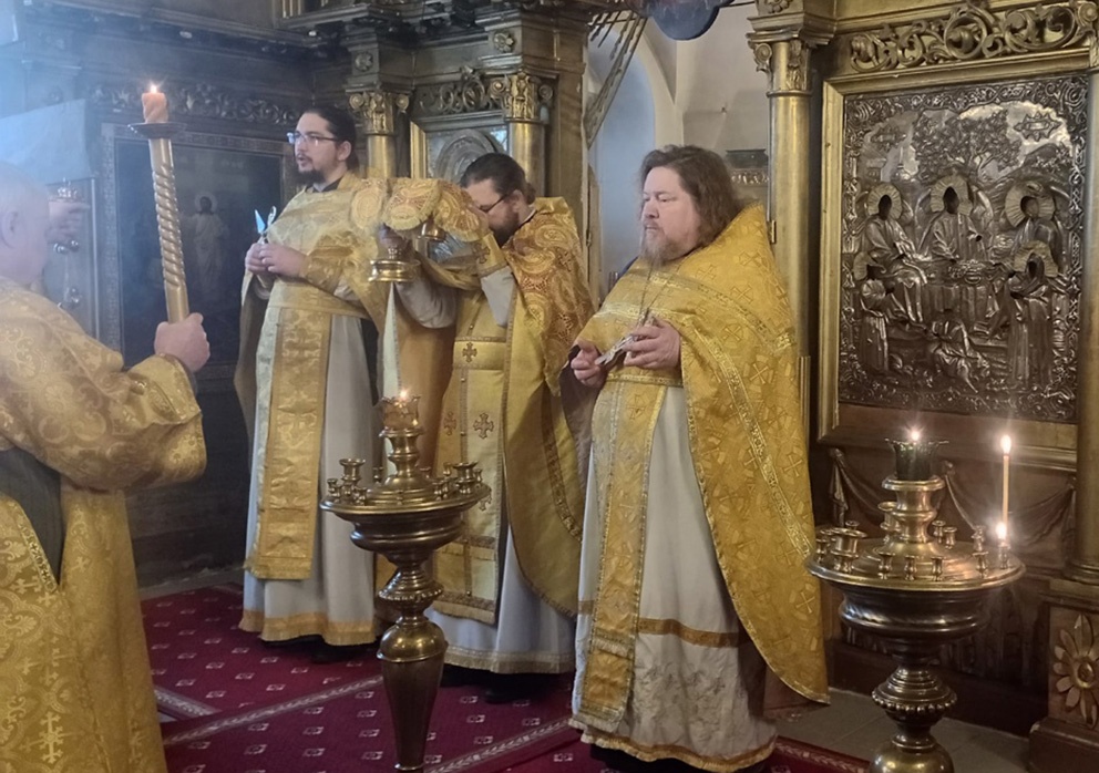 Древними песнопениями службу украсил мужской дуэт из коллектива «Лодья».