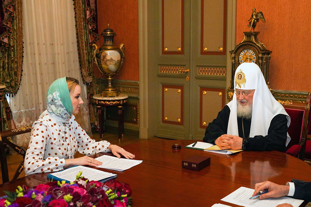 СОСТОЯЛАСЬ ВСТРЕЧА СВЯТЕЙШЕГО ПАТРИАРХА КИРИЛЛА С УПОЛНОМОЧЕННЫМ ПРИ ПРЕЗИДЕНТЕ РФ ПО ПРАВАМ РЕБЕНКА М.А. ЛЬВОВОЙ-БЕЛОВОЙ