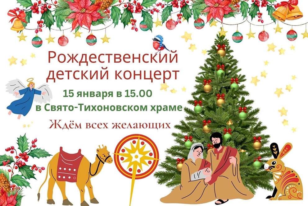 15 января 2023 года в приходе Свято-Тихоновского храма г. Ярославля состоится Рождественский детский концерт.