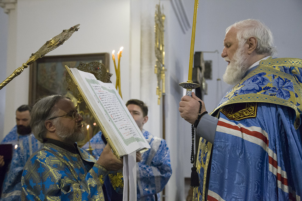 14 февраля 2023 года, накануне праздника Сретения Господня, митрополит Ярославский и Ростовский Вадим совершил Всенощное бдение в Успенском кафедральном соборе г. Ярославля.