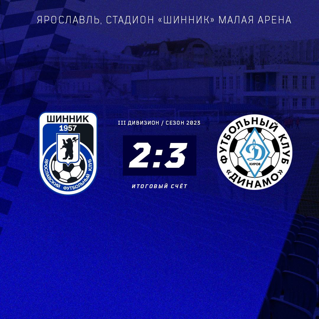 «Шинник-М» уступил со счетом 2:3 кировскому «Динамо» Полное преимущество наших парней, но не удалось довести дело до победы .