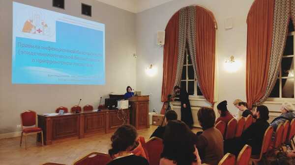 Затем состоялась лекция по инфекционной безопасности. Ее провела врач-эпидемиолог Центральной клинической больницы святителя Алексия, митрополита Московского , Екатерина Миронова.
