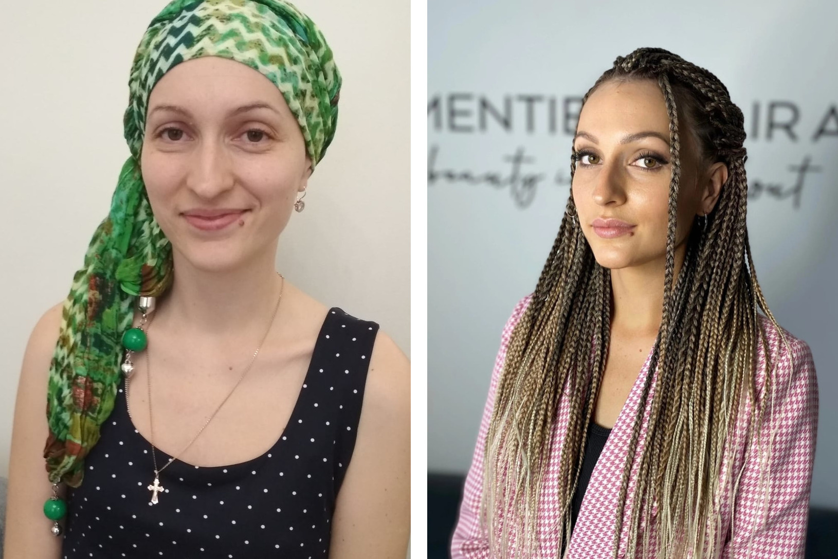 Слева — Анна во время курса химиотерапии, справа — сейчас