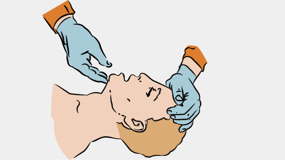 3) определить наличие нормального дыхания с помощью слуха, зрения и осязания;
