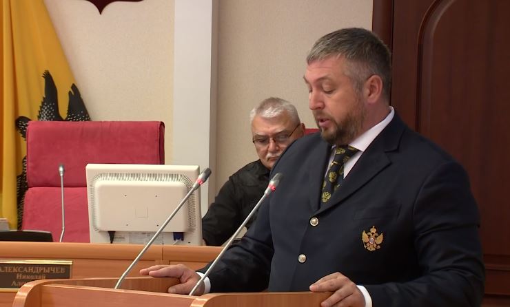 За трибуной Уполномоченный по правам ребенка в регионе. Михаил Крупин выступает с ежегодным докладом.