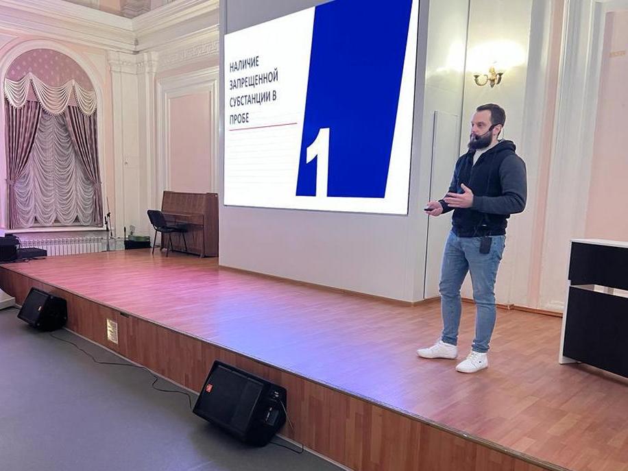 Заместитель начальника управления по углубленному медицинскому осмотру и антидопингу Центра спортивной подготовки сборных команд России Кирилл Волобуев рассказал участникам о вопросах, связанных с соблюдением антидопинговых правил, подробно осветил порядок процедуры допинг-контроля и виды нарушений антидопинговых правил. Также речь шла об опасности использования биологически активных добавок из-за возможного содержания в них запрещенных субстанций, не указанных в составе препарата.