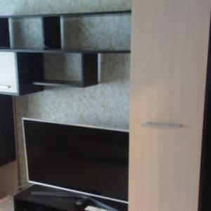 В квартире диван(раскладной), телевизор, тумба под тв. Кухонный гарнитур, стол, табуретки.