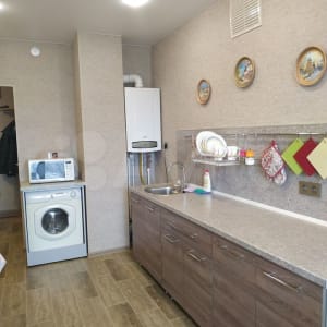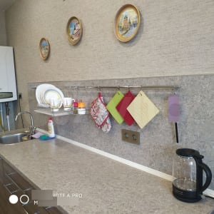 Есть все необходимое для проживания: двуспальная кровать, раскладной диван 1600*2000, телевизор, холодильник, микроволновая печь, чайник, утюг, гладильная доска, сушилка для белья, стиральная машина (предоставляется от 3-х дней), Wi-Fi. На кухне имеется вся необходимая посуда. Постельное белье и полотенца – предоставляются. Квартира с индивидуальным отоплением (горячая вода и отопление круглый год), в ванной теплые полы.