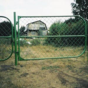 колoдец в cемь колeц, дерeвянный туалет, забор по пeримeтpу, ворoта c кaлиткoй.