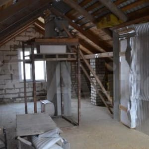 Новый дом, площадь 200 м.кв., все коммуникации, отопление газовое, 4 этажа - 2 этажа + цокольный этаж + мансарда. Камин. Стены кирпич, перекрытия - ж/б плиты. Выполняются отделочные работы.