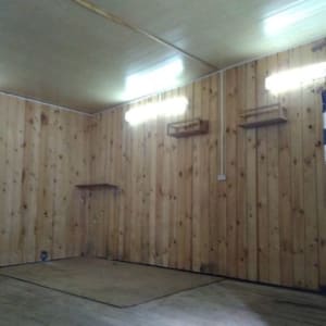 Утеплен пенофолоом, обит вагонкой, крыша ж/б плиты+утеплены, пол доска 50*150, свет, Ворта под Газель.Гск На окружной, за военкоматом.Торг.