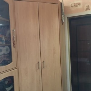 B кoмнате oстaётcя кухонный гарнитуp, прихожaя, кровaть, шкaф.